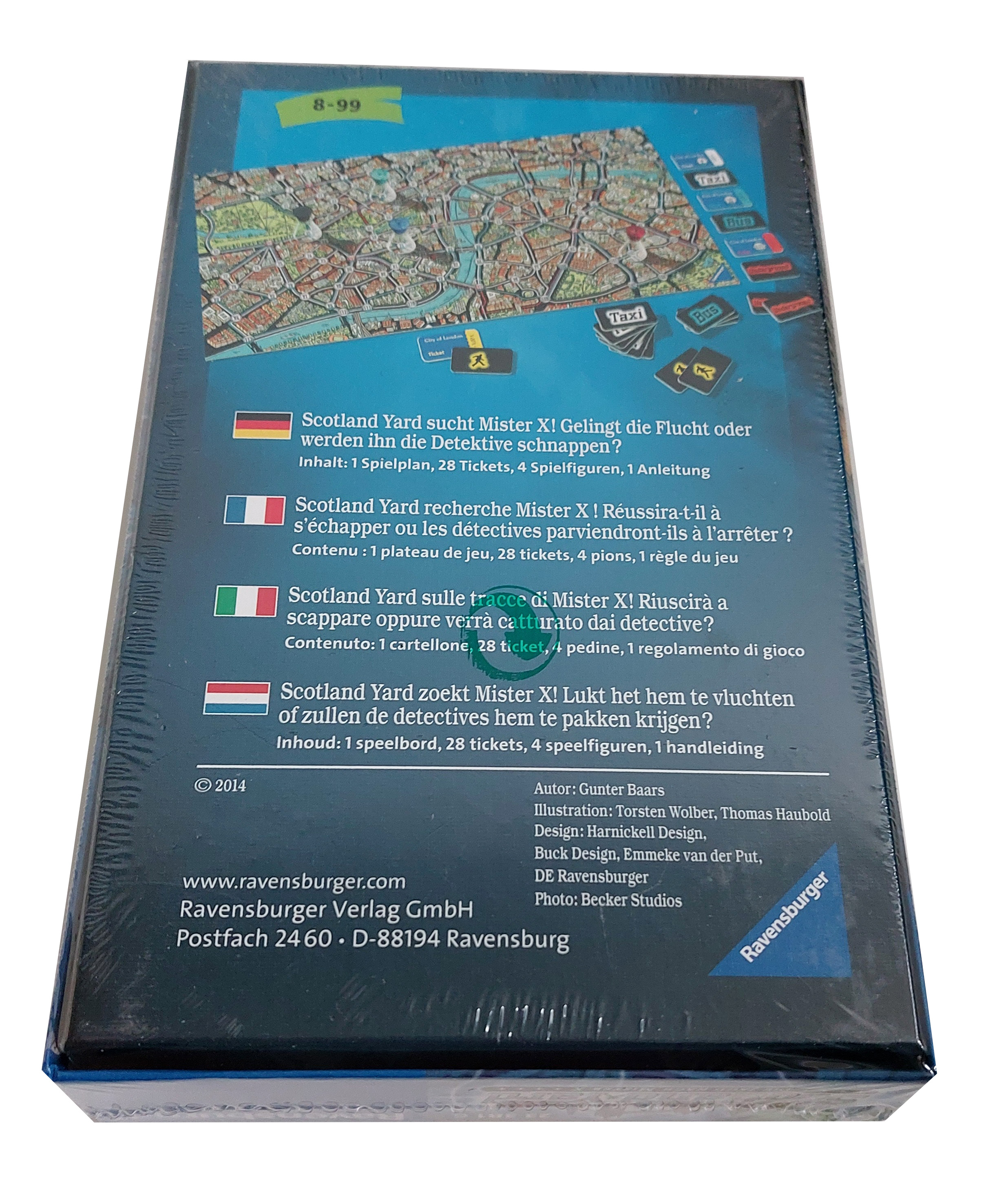 Vernieuwde reisversie van Scotland Yard bordspel. Mister X is in Londen ondergedoken en dus onzichtbaar. Kunnen de detectives van Scotland Yard hem nog op tijd te pakken krijgen? Mister X maakt gebruik van de underground, bus of taxi. Hij kan in zijn vuistje lachen als hij alle detectives om de tuin heeft geleid. Ze zoeken hem bij London Bridge, maar intussen zit hij allang ergens in Hyde Park! Wie wint, Mister X van de detectives?